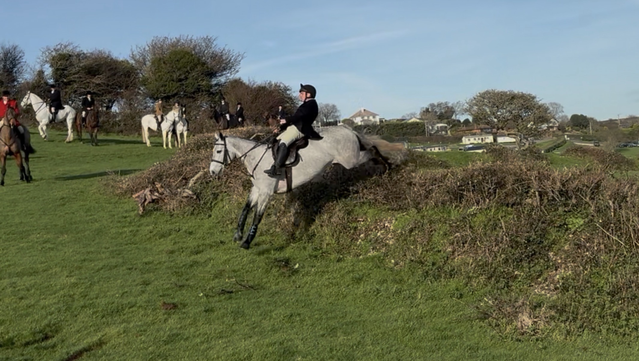 Raven has hunted in Ireland with The Ward Union. He is regularly hunting with us with The EDH. Recently attending a busy opening meet – he stands politely allowing you to enjoy a port and a pasty! He has seen hounds and enjoys watching them work. He has been schooled over hedges and attended hedge hopping clinics, he is an absolute machine!! He is as brave as a lion and as clever as a cat across trappy country – he knows where all his feet are! Polite enough to stop and do a gate but he will happily sit behind the field master all day. This horse can cross county…. He will continue to hunt regularly until sold.