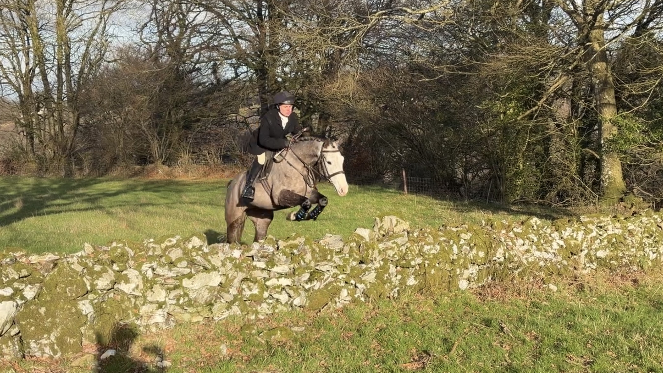 We’ve had some SERIOUS fun on this horse hunting! He is in his third season with us and he knows the job well. He has such a bold attitude and forward thinking brain – he is SO brave, he has jumped anything we have put in front of him! He gives you a lovely confident feeling going into a hedge and doesn’t look twice at a ditch – he’s good with the hounds, brilliant with other horses and generally very mannerly to hunt. He isn’t a horse that likes to sit and chat at the meet or plod at the back (although he will if you ask!) – he wants a rider that likes to get on with the day ahead! He has hunted with a lady rider with The TVFH attending all their Vale Days and The EDH. He has also attended Vale days with various other packs. He hunted a handful of days as a young horse with The Galway Blazers. Johnny absolutely loves following hounds!
